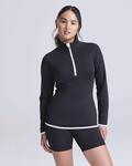 Slim fit, CoolFit blended fabric containing elastane that provides stretch for comfort and a great fit, Reflective details, 1/2 zip with stand up collar for warmth, Self fabric contrast colour binding details, Tearaway label, Raglan sleeve, UPF 40+ UV protection